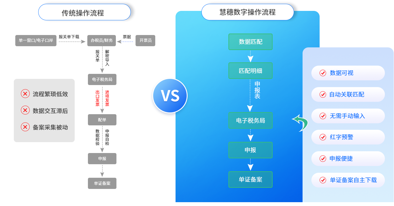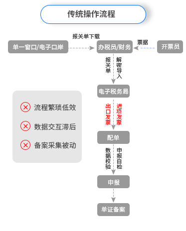 3 天极速到账:报关单 / 发票 / 退税数据全自动流转,较传统周期(15-30 天)压缩 80%+,加速资金周转效率,降低财务成本