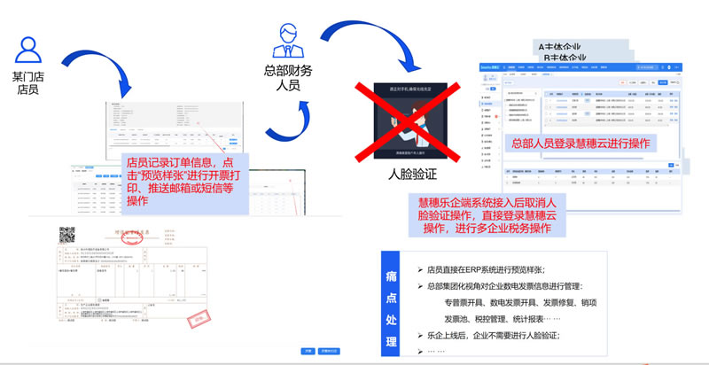 对接慧穗云乐企后,系统支持免人脸识别直接开票功能,简化操作流程,提升一线员工接受度与工作效率。