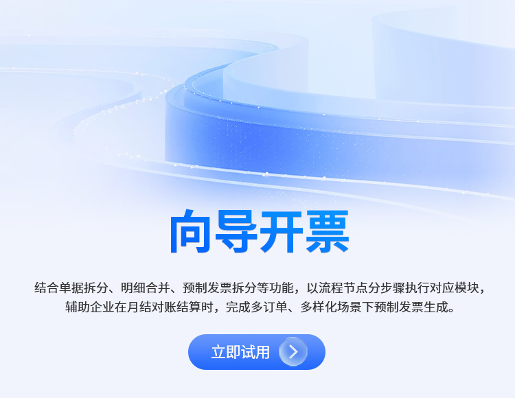 企业实际经营中月结对账结算时开票,因结算订单多样化处理逻辑,而产生的复杂的开票动作。向导开票结合了单据的拆分,明细的合并,准“预制发票”的拆分等功能,以流程节点的形式分步骤执行对应功能模块,能够辅助企业完成多订单、多样化生成预制发票